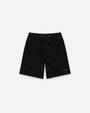 The short features an elastic waistband with draw cord and has a leg length of 18".