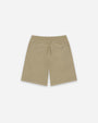The short features an elastic waistband with draw cord and has a leg length of 18".