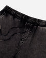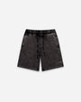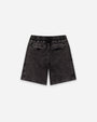 The short features an elastic waistband with draw cord and has a leg length of 18".