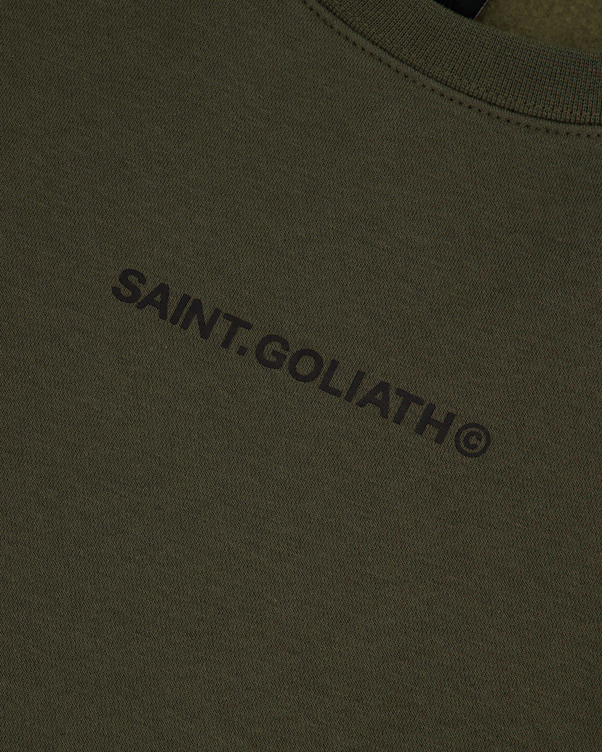 The St. Goliath Id Crew is made from brushed fleece and features simple branding on the front chest.