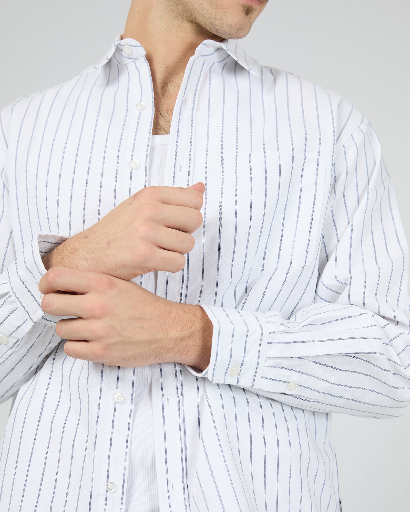Introducing the Ox Stripe Shirt - a relaxed-fit, long-sleeve shirt featuring multicoloured oxford stripes for a fresh, clean look perfect for any occasion.