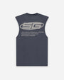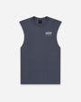 The muscle features a left chest print logo and large back puff print logo