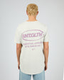 The Short Circuit Tee in Grey is a slim-fit essential with a curved hem and graphics on front and back. A versatile piece that pairs with any outfit.