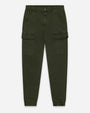 The pant features front patch pockets with utility pockets and elastic cuffs for a tapered look.